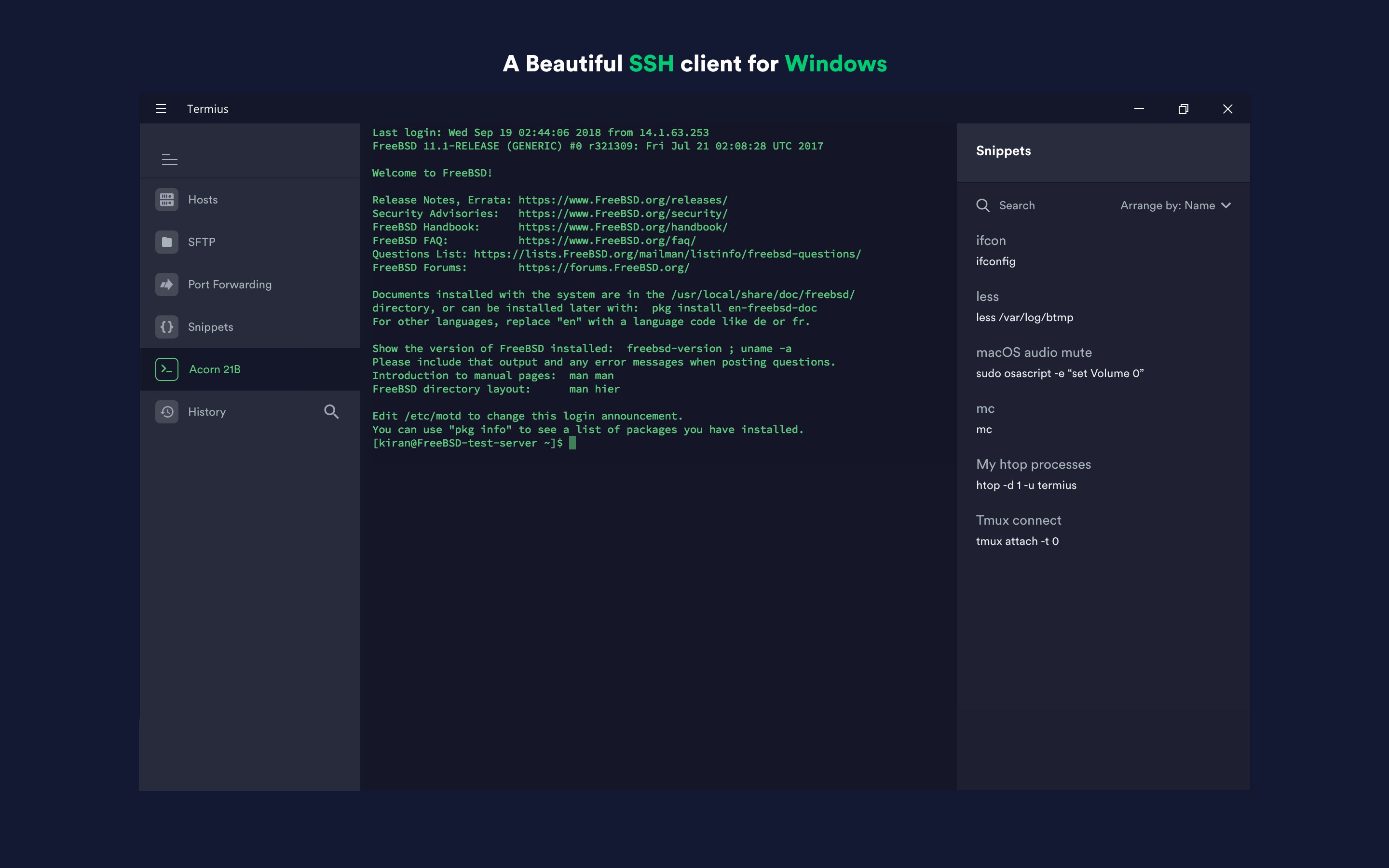 In a nutshell, ssh uses many encryption and authentication techniques to ensure that data streams cannot be read or manipulated simply put, an ssh client is a program that uses a secure shell protocol to help you connect to a remote computer. By terminal, we are referring to some means of entering commands and viewing results. There are plenty of apps out there that purport to do what we. Ssh abbreviates for secure shell or secure socket shell. The best free ssh tabbed terminal clients for windows. So, how does ssh establish secure communication? It is offers several features and competes with some of the paid or closed source concluding remarks. What are the best ssh clients for windows? This tool is more than just being an ssh client. As you can see from our list, the category of putty alternatives for windows is oversupplied. Bitvise ssh client is designed to offer a protected remote access for windows and workstations. A lot of putty alternatives employ tabs to allow you to access the market for terminal emulators is very well supplied. If you already have gitbash installed when you install conemu, conemu will add git bash as one of the shell.