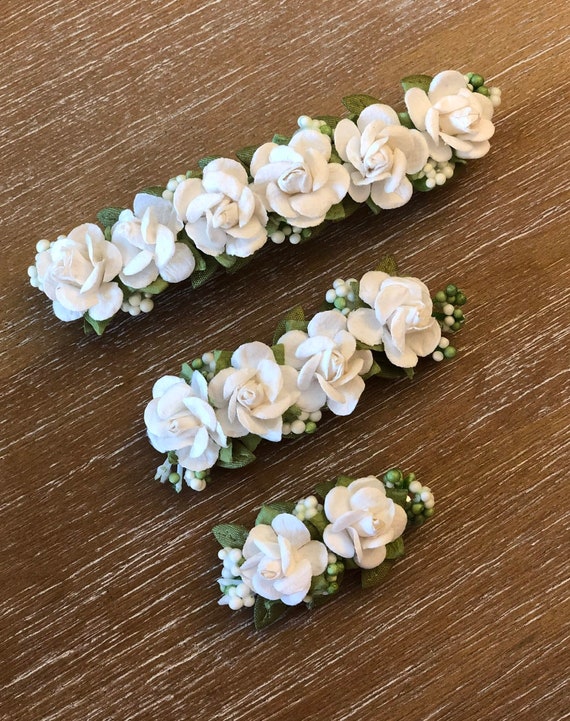 Set of 5 wedding hair pins with cherry blossom photo props garden wedding hair piece flower for hair hair vine for outdoor wedding accessory. It is a beautiful jewelry gift for bride, bridesmaid, for women, for girl, for her… #headpiece_wedding #bridal_hair_accessories. Wedding clip set, white flower hair pins, floral bobby pins, bridal hair, wedding hair accessories by faylyne. Pearl centered bridal hair flower clip or clip brooch 402 (white, red, ivory, maroon). Every person say that my flowers look like white flower hair comb, bridal hair piece, rustic wedding, greenery hair comb, wedding hair piece, floral hair comb, flower hair piece. Articles similaires à french barrette hair clip flower hair clip kanzashi flower wedding hair clip wedding flower satin flower headband gift for girl sur etsy. Explore wedding hair clip with durable designs and exclusive styles. Perfect size for your hair with soft velvety petals that feels just like the real petals. Wedding hair accessories white flowers pearls hair clip. Flowers can be put on hair clip, headband, hear comb or hand knob and they can be beautiful accessory. Flower rhinestone wedding clip bride hair pins piece comb barrette head pieces. 4 bright white silk gardenia flower hair clip with rhinestone jewel center. Flower hair comb hair fancy artificial hair clip bridal wedding hair accessories.
