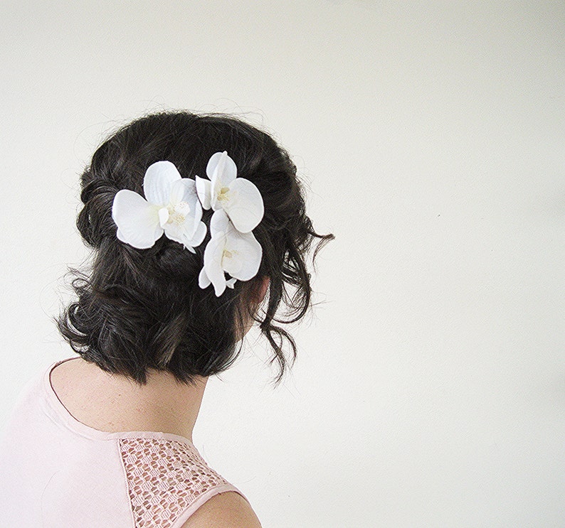 White Flower Hair Clip Wedding : Orchid Hair Clip White Flower Hair Clip Orchid Hair Flower Bridal Hair Pin Hair Pins Wedding Headpiece Set Of 3 2915173 Weddbook. It is available as a white hair flower and comes with an alligator clip. With two prong hair pin at the back for secure attachment to your hair. Be certain, the white elisavet flower adorned with little pearls and metal leaves is a perfect variant! Flower rhinestone wedding clip bride hair pins piece comb barrette head pieces. Beautiful handmade girl's flower hair clip in white and silver colours handmade using kanzashi method.